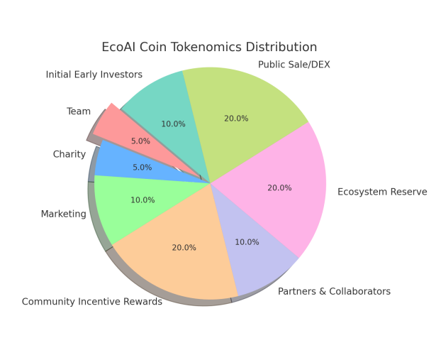 The tokenomics of EcoAI Coin are meticulously designed to align with the project’s sustainability goals, ensuring the long-term viability and impact of the initiative.